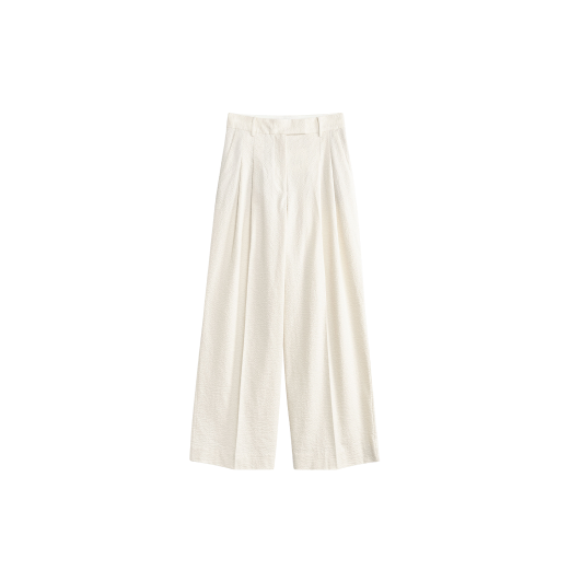 Combining ease and elegance, the tactile Cymbaria trousers are made for the office and beyond. The high-waisted silhouette features wide legs, pressed pleats, and belt loops. Pair with the matching Ophie blazer and Blaire waistcoat for a complete tailored look.