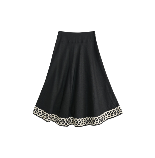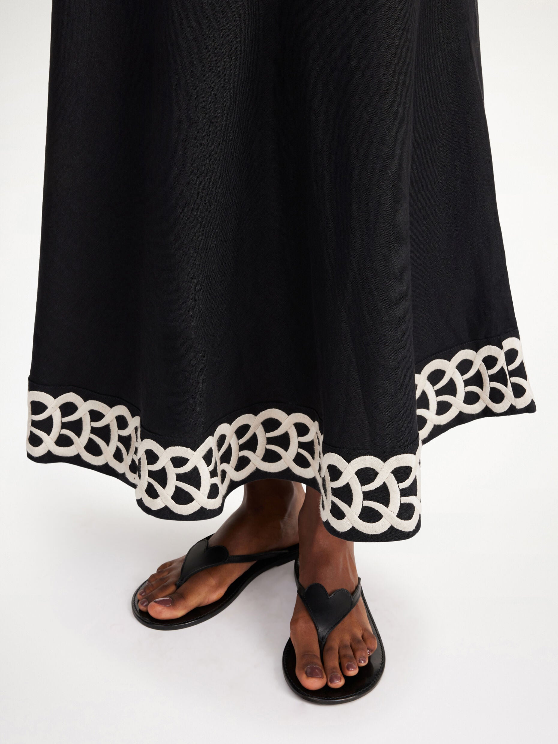 Detailed with densely-worked embroidery at the hem, the Leonne skirt has a bohemian, vintage-inspired vibe. The A-line silhouette is crafted in an airy linen and closes with a zipper.
