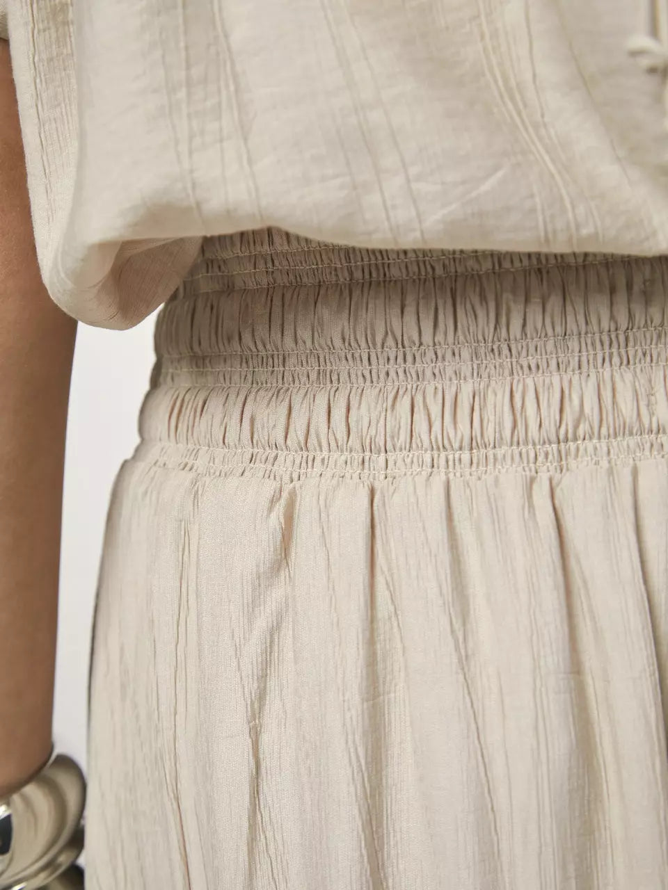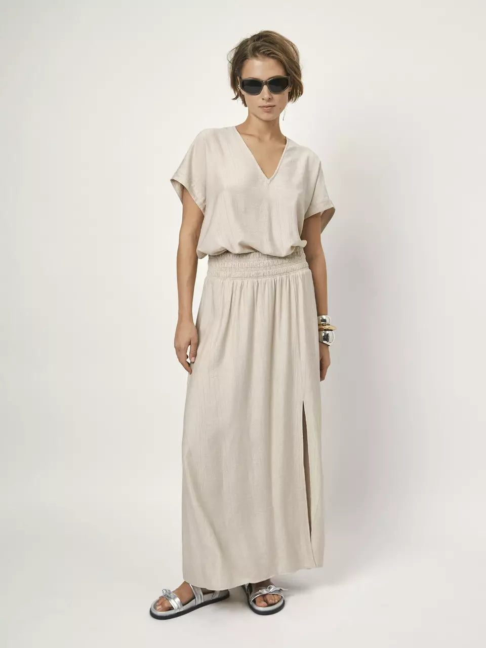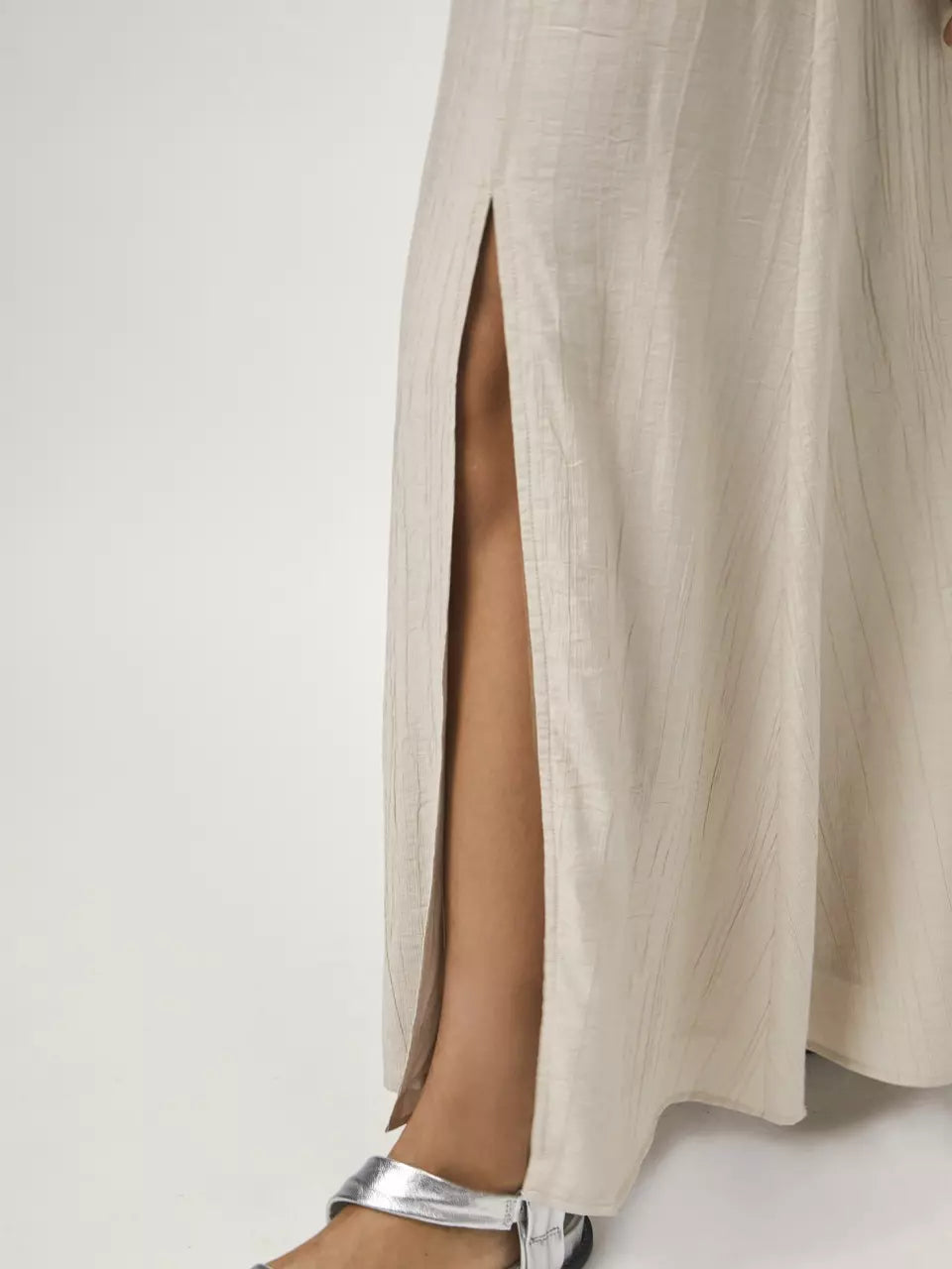 This versatile skirt is suitable for any occasion and will make you feel comfortable wherever you go. The skirt features an elastic waistband for comfort and a side slit.
